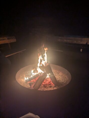 Evenings provided relaxed opportunities for connection: participants gathered indoors by the fireplace or outside around a warming campfire with drinks, creating cozy spaces for conversation and exchange.